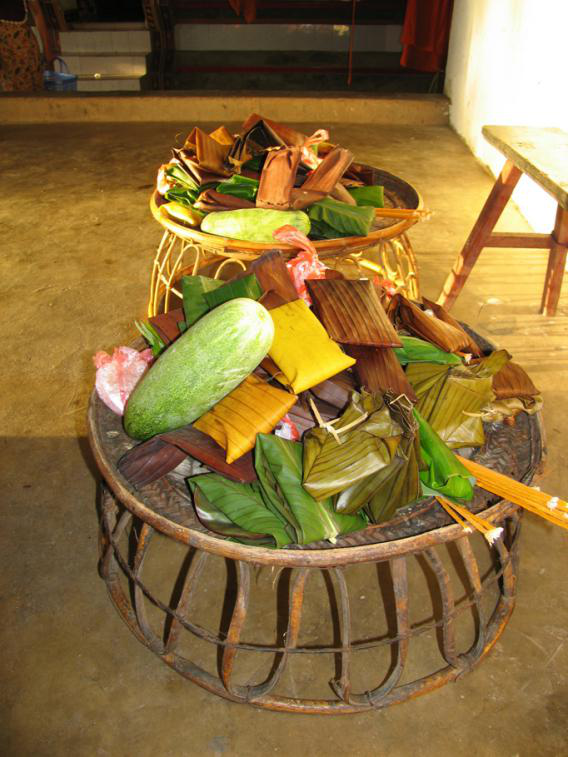 外出勞動(dòng)者常在野外用餐,用芭蕉葉或飯盒盛一團(tuán)糯米飯,隨帶鹽巴、辣子、酸肉、燒雞、喃咪(傣語(yǔ),意為醬)、青苔松相伴進(jìn)食。