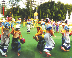 傣家男子均以能成為一流的鼓手為榮,姑娘們擇偶時(shí),首先要從賽鼓的優(yōu)勝者中遴選如意郎君,這震響在傣家心底的鼓聲,成為傣家民俗文化中的重要組成部分。
