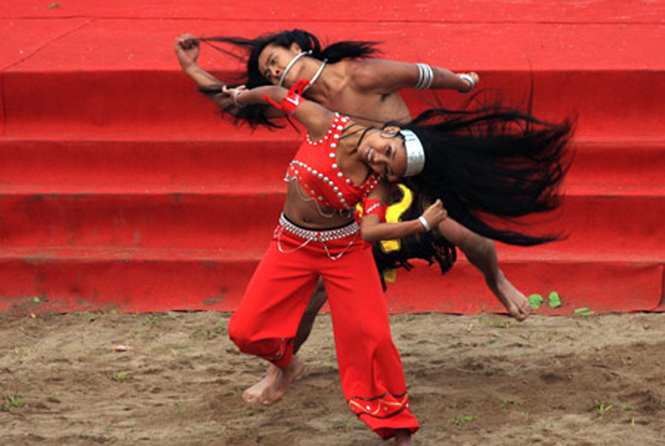 甩發(fā)舞:是廣泛流傳在佤族婦女中的一種舞蹈?!端Πl(fā)舞》的產(chǎn)生年代很久,是屬佤族祖?zhèn)?。佤族婦女酷愛長發(fā),以長發(fā)為美,并從小習慣長發(fā)披肩。每當婦女在水竹槽下用水洗凈頭發(fā)后,就要低頭梳妝,甩發(fā)晾干、整型,后經(jīng)人們整理提高而成為《甩發(fā)舞》。