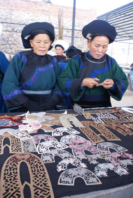水族的民間工藝主要有剪紙、刺繡、染織、編織、銀飾加工、陶瓷、雕刻等,其中刺繡、染織和雕刻最為有名。水族的民間剪紙藝術(shù)歷史悠久,剪紙的內(nèi)容多種多樣,有表現(xiàn)吉祥的龍、鳳、麒麟、梅花鹿,也有花鳥魚蟲等自然現(xiàn)象,造型千姿百態(tài),生動(dòng)別致,栩栩如生。水族婦女的刺繡主要有平繡、馬尾繡、空心繡、挑繡、結(jié)線繡、泡繡等。水族的編織主要是竹編,他們用竹子編織成席子、躺椅、坐椅、斗笠、簸箕、籃子、魚簍、雞籠等日常用品。水族的雕刻工藝十分發(fā)達(dá),主要有木雕和石雕。水族的木雕多見于房屋的窗花雕刻,床沿雕刻等,雕出的圖案諸如龍鳳呈祥、花鳥浮雕等都很美觀大方。