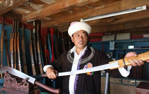 景頗族家家戶戶有長刀,景頗族男人身不離刀。長刀是男人之魂。