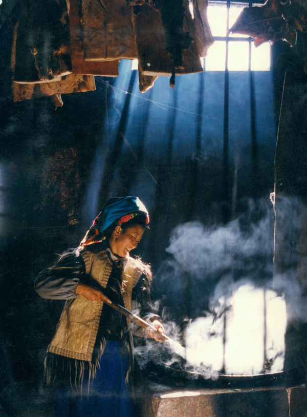 男女老少皆喜歡家釀的咂酒。青稞、大麥或玉米釀成酒,封于壇中,用時(shí)啟封,注入開(kāi)水,插上竹管,輪流吸咂,邊飲邊加清水,直至味淡。普遍吸蘭花煙。