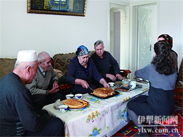 如今,她和姐姐經(jīng)常互相串門,一起做拜列西。做好后,一家人圍坐在一起,喝茶,吃拜列西,聊天?!耙涣钠饋恚蜎]個完?!辟I斯胡旦笑說。采訪當(dāng)日,她即把姐姐邀來,跟她一起做塔塔爾族的這種傳統(tǒng)食物。