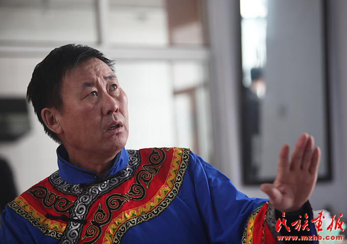 赫哲族獨特說唱藝術(shù)伊瑪堪的傳人吳寶臣(袁東平 攝影)