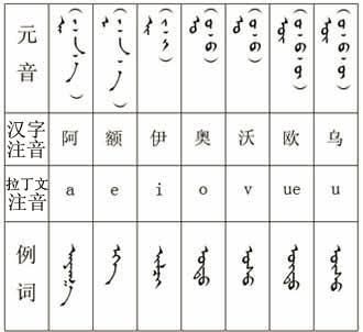 蒙古文字母變體(括弧內(nèi)字母)及例詞