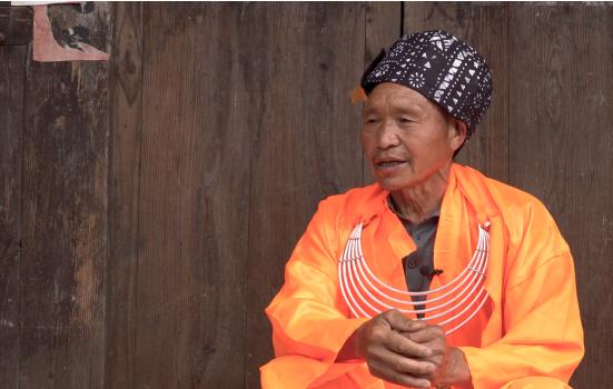 另一種是普通男子服飾,為藍(lán)色斜襟長衫,頭飾以黑色布帶圍繞成的帽子,圍裹較為麻煩,常常需要旁人幫助。在帽子左側(cè)還會夾有一塊彩色的帕子。
