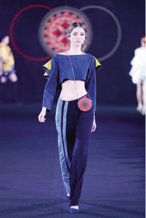 課題組將彝族銀飾經(jīng)典的浮雕圖案元素、彝族畢摩繪畫和文字元素、彝族服飾傳統(tǒng)紋樣圖案元素、彝族鸚嘴帽元素、朵洛荷舞蹈元素、察爾瓦流蘇元素等融入到作品中,沿用傳統(tǒng)民族服裝的色調(diào),并對圖案和造型進(jìn)行現(xiàn)代設(shè)計(jì)和審美的轉(zhuǎn)化與提升,傳統(tǒng)服飾與現(xiàn)代創(chuàng)新設(shè)計(jì)相結(jié)合,碰撞出了新的時(shí)尚美感。