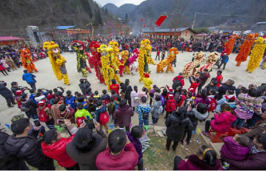 恩施人過(guò)年,離不開群體娛樂,從城鎮(zhèn)到鄉(xiāng)村,群眾參與程度高,以玩龍燈、玩獅子、劃采蓮船、打連廂、打耍耍為主。