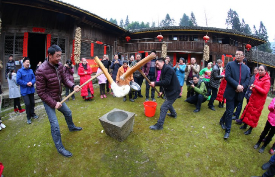 更具特色的要數(shù)正月十五趕毛狗子了。傳說(shuō)毛狗子(狐貍的俗稱)喜歡偷雞吃,所以必須得趕走。趕毛狗這一天,親朋好友聚在一起,先用竹筒做成火把或用木梓油做成燈備用,再砍樹枝搭成棚子,放入草扎的毛狗子,堆放未破節(jié)的竹筒和火炮樹葉。待天黑,男女老少全部出動(dòng),在屋邊及路邊插上點(diǎn)燃的火把、燈,然后燒燃毛狗棚,這邊的人群發(fā)出“哦嗬”聲,那邊的人群高喊“趕毛狗子喲!”此時(shí),滿山遍野火光沖天,叫喊聲此起彼伏,震耳欲聾,熱鬧非凡。