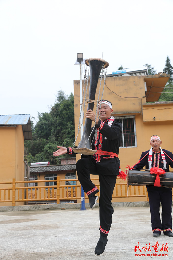 9月23日,為慶祝第五個中國農(nóng)民豐收節(jié),羅運村村民盤石輝等人通過《十二月耕作歌》《釣魚舞》《黃泥鼓舞》等歌舞形式,慶祝今年村里八角、甜茶、竹筍等產(chǎn)業(yè)喜獲豐收。