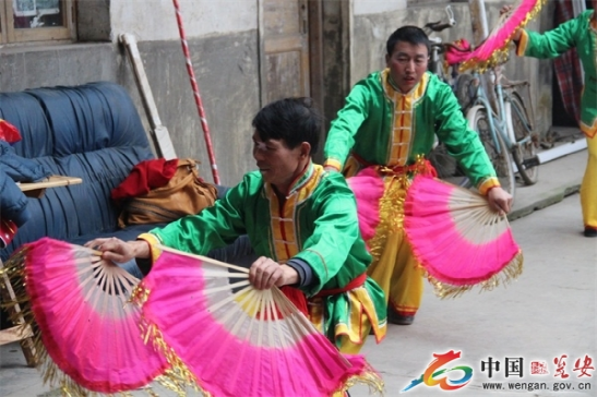 “燈夾戲”,即花燈夾川戲的一種藝術(shù)表演形式,是花燈與川戲饒有新意的巧妙組合,是一種匠心獨(dú)運(yùn)的嫁接藝術(shù)。主要流傳于我縣平定營鎮(zhèn)。燈夾戲除了以其精湛的表演形式慶祝豐收景象及生意興隆外,還富有濃厚的宗教色彩。正月初九起燈時,所有戲班子成員在班主的帶領(lǐng)下,身著戲裝,跪拜在花燈菩薩(牌燈)面前,插香點燭、燒錢化紙,待供祭完畢后方可演出。正月十五是“化燈”的日子,戲班子成員要敲鑼打鼓,重新燃燭燒紙,站成一排恭敬祭奉花燈菩薩,然后化燈結(jié)束。