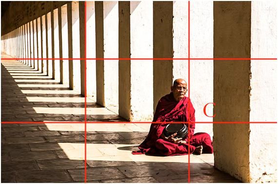 這三張圖都是就是黃金交叉點構(gòu)圖的應(yīng)用,第三張是在緬甸的拍的,當(dāng)時這個僧人坐在有光的長廊里,他的頭不在交叉點上,但落在相對差不多的位置。