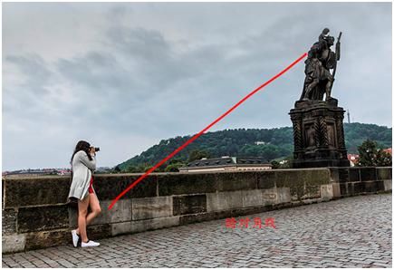 這個海邊老人跟狗之間也形成了暗對角線,包括下面的這個在拍照的人跟這個雕塑之間也形成了一個暗對角線,所以這個畫面非常平衡,不是一邊重一邊輕,而且不呆板。所以對角線這種形式非常實用。