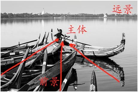 引導(dǎo)線的用處比較廣,在風(fēng)光及環(huán)境人像都在應(yīng)用。這張片子,雖然這個劃船的人是主體,但重點在于船形成的引導(dǎo)線。這個引導(dǎo)線把視線引向了主體的身上,然后看到主體身后比較亮的水面,又看到遠方的白塔,這些遠景如果沒有引導(dǎo)線,肯定是先看到最亮的地方,可能是一下就看到遠方的白塔,這種暗的引導(dǎo)線一般不太引起人的注意。
