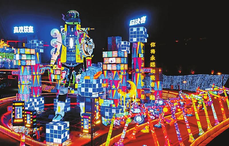 2月22日晚,第27屆自貢國際恐龍燈會(huì)從“云”上轉(zhuǎn)為線下,在中華彩燈大世界璀璨綻放。