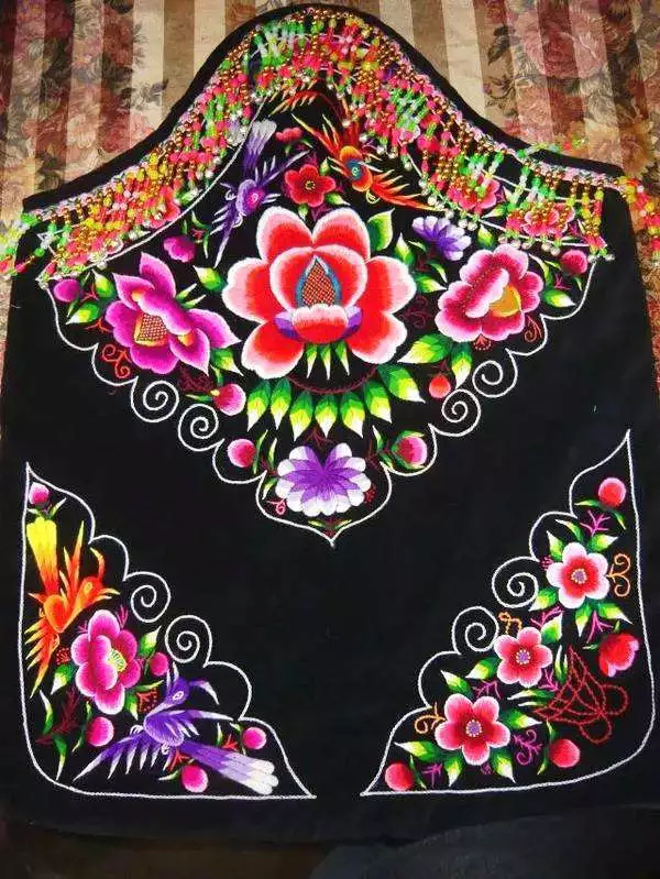 彝族婦女圍腰,是女性審美的結(jié)晶,實用美觀。圍腰是最能集中體現(xiàn)彝族女性心靈手巧的女紅作品,因此成為青年男子傳統(tǒng)擇偶的重要標(biāo)準(zhǔn)之一。每條彝族圍腰,須經(jīng)過剪紙、裁剪、刺繡、挑花、配飾等環(huán)節(jié),每一個細(xì)微的過程都傾注了彝女的聰明與才智。事實上,彝族婦女圍腰,還蘊(yùn)含著重要的彝族社會歷史、文化信息。
