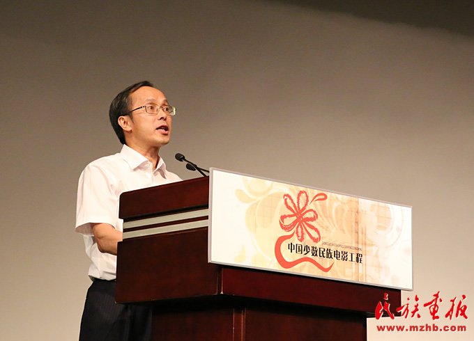 國家民委文化宣傳司副司長、中國少數(shù)民族電影工程領導小組辦公室副主任鐘廷雄致辭