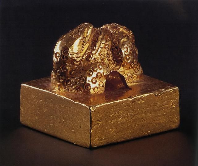 彌生時期,在中日關(guān)系史上的里程碑事件,是在日本福岡地區(qū)發(fā)現(xiàn)一枚金印,上有“漢委奴國王”五個字(圖七)?!逗鬂h書·倭國傳》中有“光武賜以印綬”的記載。即漢光武帝建武中元二年(公元57年),“奴”國曾遣使到洛陽,漢朝賜其王以金印。