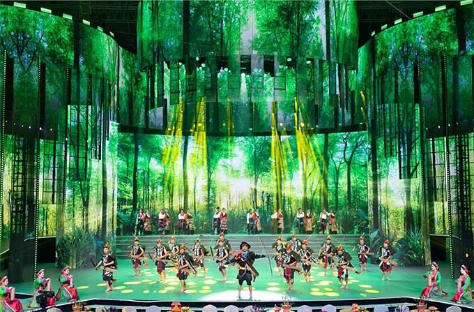 在舞美上,晚會傾力打造中華文化概念,突出鑄牢中華民族共同體意識,建構(gòu)熱烈祥和的觀演環(huán)境、身臨其境的現(xiàn)場體驗、自然流暢的互動場景,以更炫麗、更時尚、更具生命力的節(jié)目內(nèi)容和形式,為觀眾提供技術(shù)與藝術(shù)完美結(jié)合的視聽盛宴。主創(chuàng)人員別具匠心地把舞臺設(shè)計成一個具有民族特色的大客廳,寓意各族兄弟姐妹溫暖團(tuán)聚,營造既有民族特色又有時代氣息的視覺空間。