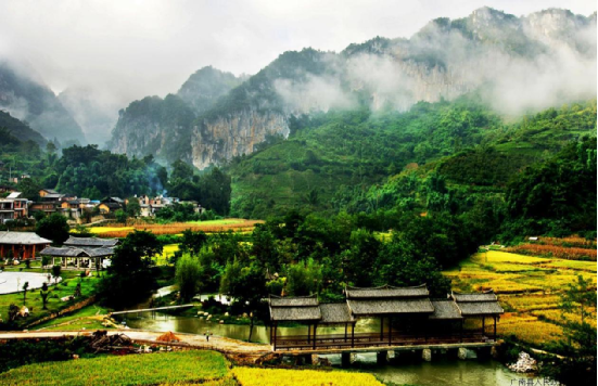 昔日壩美村房屋以落地和半樓居兩種桿欄式風(fēng)格為主,主屋用木板架成,四周用樹枝圍攏,再敷上泥巴、牛糞攔合成的粘土,非常通風(fēng)、保暖,上蓋瓦頂、抱廂、前置涼吧或圍欄,樓上住人,樓下關(guān)牲畜、堆雜物、當(dāng)?shù)貕炎宸Q麻欄樓?!稘h書·地理志》就有壯家“男耕女織”的記載:“男子耕農(nóng),種稻麻,女子蠶??椏??!鼻О倌陙淼拇汤C技藝,之所以能夠代代相傳,延綿不絕,很大因素緣于它是不少壯族婦女賴以為生的基本技能。村民的食物、衣物、生產(chǎn)工具、生活用具基本上是自己生產(chǎn),寨子中隨處可見轉(zhuǎn)動(dòng)的水車、獨(dú)木舟、人工石磨、水磨、木碓、水紡織機(jī)、木榨油機(jī)、獨(dú)木風(fēng)箱、木梨粑、木背柴架、木梯、木菜板、木燈架、木三角獨(dú)輪推柴車、竹木水桶、葫蘆酒壺、木儲(chǔ)物器、石缸、石磙等生產(chǎn)生活工具。它們的古樸粗拙樣,凝固了歷史,傳遞著遠(yuǎn)古的文化信息。自2019年3月以來,壩美景區(qū)暫停對(duì)外開放進(jìn)行提質(zhì)升級(jí)改造。經(jīng)過一年多的建設(shè),一期工程已完成投資4億元,景區(qū)內(nèi)基礎(chǔ)設(shè)施及旅游產(chǎn)品業(yè)態(tài)都有了質(zhì)的提升。以世外桃源壩美景區(qū)為核心,以壯族文化為內(nèi)涵,以稻作田園景觀、普千村、冷熱泉等內(nèi)容為延伸,打造國內(nèi)首個(gè)集田園休閑度假、壯族文化體驗(yàn)、藝術(shù)創(chuàng)意創(chuàng)作、宗教朝圣等多重體驗(yàn)為一體的旅游度假區(qū),將通過改造民居、再造田園、以水為魂等方式打造現(xiàn)實(shí)版的“桃花源”。