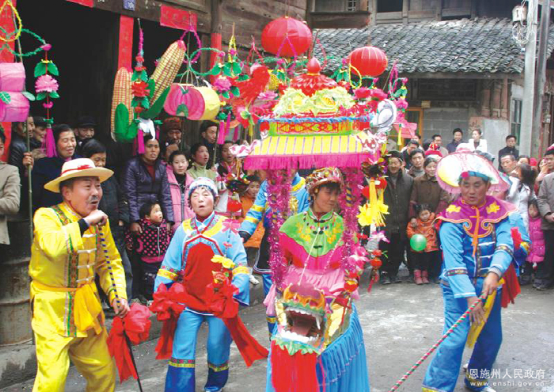 利川燈歌,又名燈調,始于清代初期,已有300多年的歷史,是人們逢年過節(jié)之時以彩龍船為道具,畫地為臺、亦唱亦演的民間藝術形式。2011年5月,利川燈歌被國務院公布為第三批國家級非物質文化遺產(chǎn)名錄。