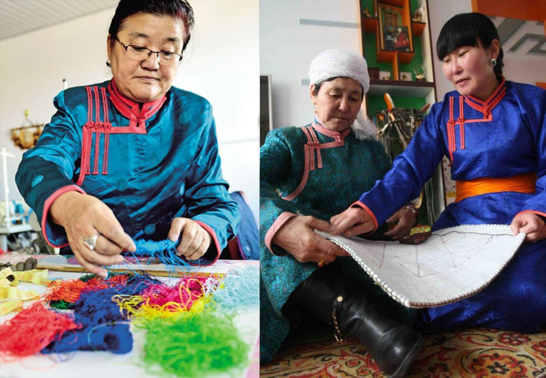 蒙古包穹頂?shù)絻?nèi)壁,從門簾到地上鋪的毛氈,從日常家居的蓋布到商旅使用的茶鹽袋,蒙古族人將細(xì)膩的各式花樣運用在食衣住行的各個方面。而這些精美絕倫的裝飾都有一個共同的名字,那就是蒙古族氈繡技藝。