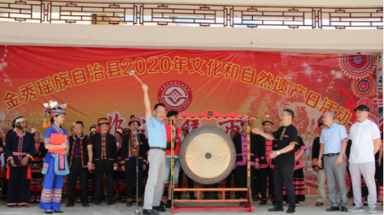“擊鑼開市”“山歌傳情”“瑤醫(yī)問診”“吃樹葉豆腐”“跳黃泥鼓舞”,6月13日,廣西來賓市金秀瑤族自治縣2020年“文化和自然遺產(chǎn)日”——“非遺集市”活動(dòng)在羅香鄉(xiāng)橫村瑤寨拉開序幕。廣西壯族自治區(qū)非物質(zhì)文化遺產(chǎn)保護(hù)中心書記朱鳳立、金秀瑤族自治縣人民政府副縣長馬峰為“非遺”集市“擊鑼開市”。