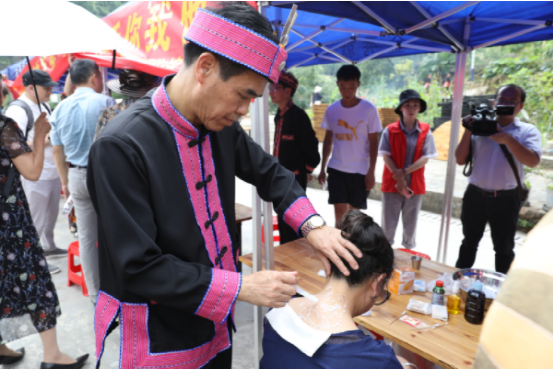 本次活動(dòng)以2020年“文化和自然遺產(chǎn)日”的“非遺傳承,健康生活”為主題,重點(diǎn)圍繞傳統(tǒng)醫(yī)藥項(xiàng)目保護(hù),普及“非遺”知識(shí)和健康生活理念,營造全社會(huì)共同參與、關(guān)注和保護(hù)傳承優(yōu)秀傳統(tǒng)文化濃厚氛圍而開展。邀請(qǐng)十位瑤醫(yī)藥傳承人帶領(lǐng)40多位瑤醫(yī)弟子各顯神通,在現(xiàn)場(chǎng)開展非遺項(xiàng)目義診活動(dòng),為游客免費(fèi)問疹,展示泡藥療法、針灸療法、燈草療法、坐浴療法、拉伽通灸療法等10種技法。瑤寨里每一戶人家拿出拿手絕活在自家進(jìn)行現(xiàn)場(chǎng)展示,黃泥鼓制作、樹葉豆腐制作、瑤族織繡技藝、釀酒技藝、舂糍粑、原創(chuàng)歌曲展示等,豐富多彩的各種技藝,讓游客流連忘返。