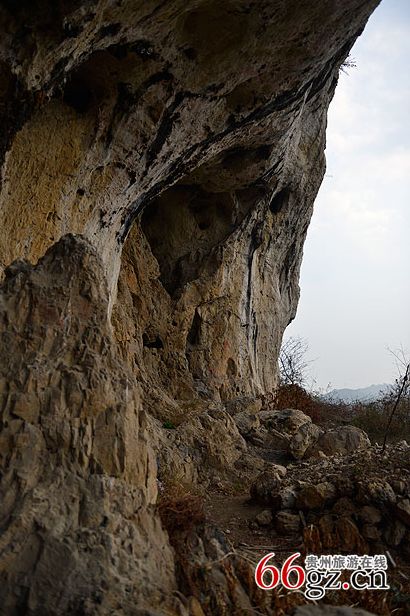 金山洞摩崖是貴陽市花溪區(qū)最早的摩崖石刻,也是貴州最早的摩崖石刻之一。該摩崖石刻位于燕樓鄉(xiāng)東北三里的金山洞巖壁上。其山上豐下儉,古人利用自然山形,在可避風雨的洞壁上摩巖、題刻賦詩作畫。整個摩崖面積通高140厘米,寬74厘米;自右至左豎行排列,共6行82字。據(jù)系楷書陰刻,書法古樸流暢,具有較高的歷史價值。