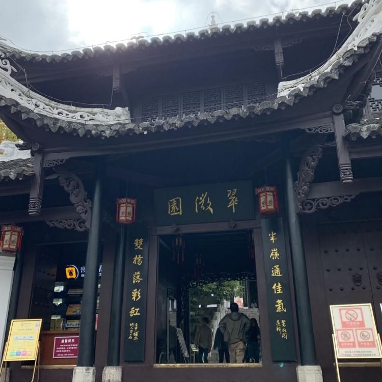 第一部分是石牌坊、浮玉橋和涵碧亭。漢白玉石牌坊上書“城南勝跡”四個大字,立柱的“抱鼓石”為八尊石獅子,石獅尾朝上頭朝下,活靈活現(xiàn),富有生氣。穿過石牌坊走上浮玉橋,橋體連接南北兩岸,其名來源于其質地,由貴州特產白棉石打造,從遠處看猶如一條玉帶浮在水面。橋上的涵碧亭是古人納涼休息的地方,因橋下有深潭“涵碧潭”而得名,亭子四柱上刻有兩幅對聯(lián),分別是“水從碧玉環(huán)中出,人在青蓮瓣里行”、“銀漢浮空星過水,玉虹拖雨雁橫秋”。