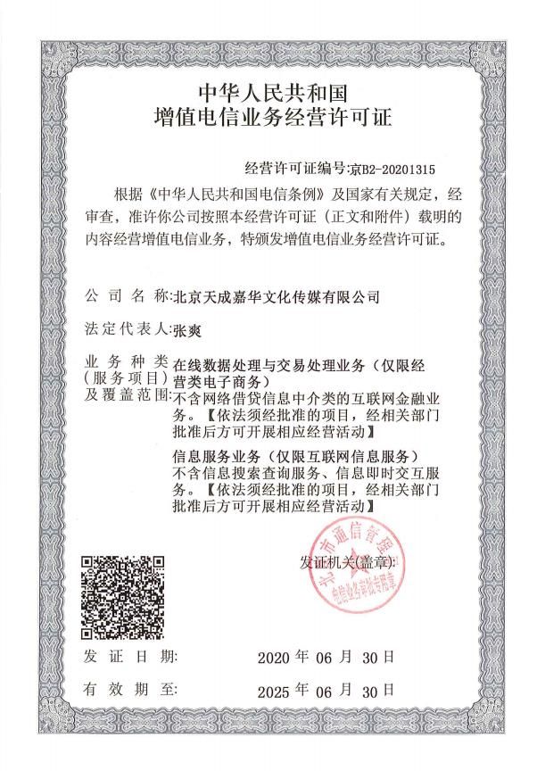 增值電信業(yè)務經(jīng)營許可證B2-20201315