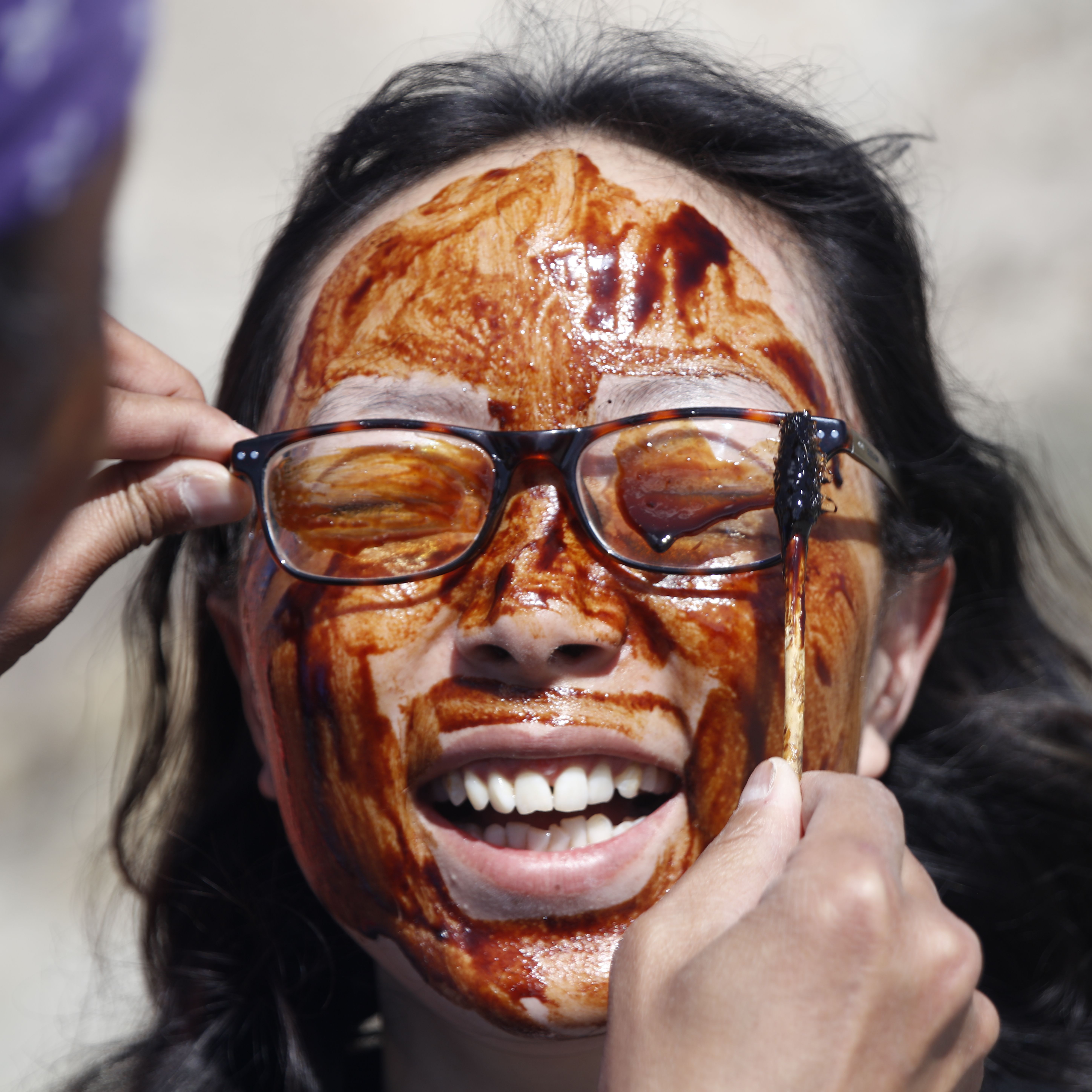 老奶奶把札達面膜抹在客人臉上