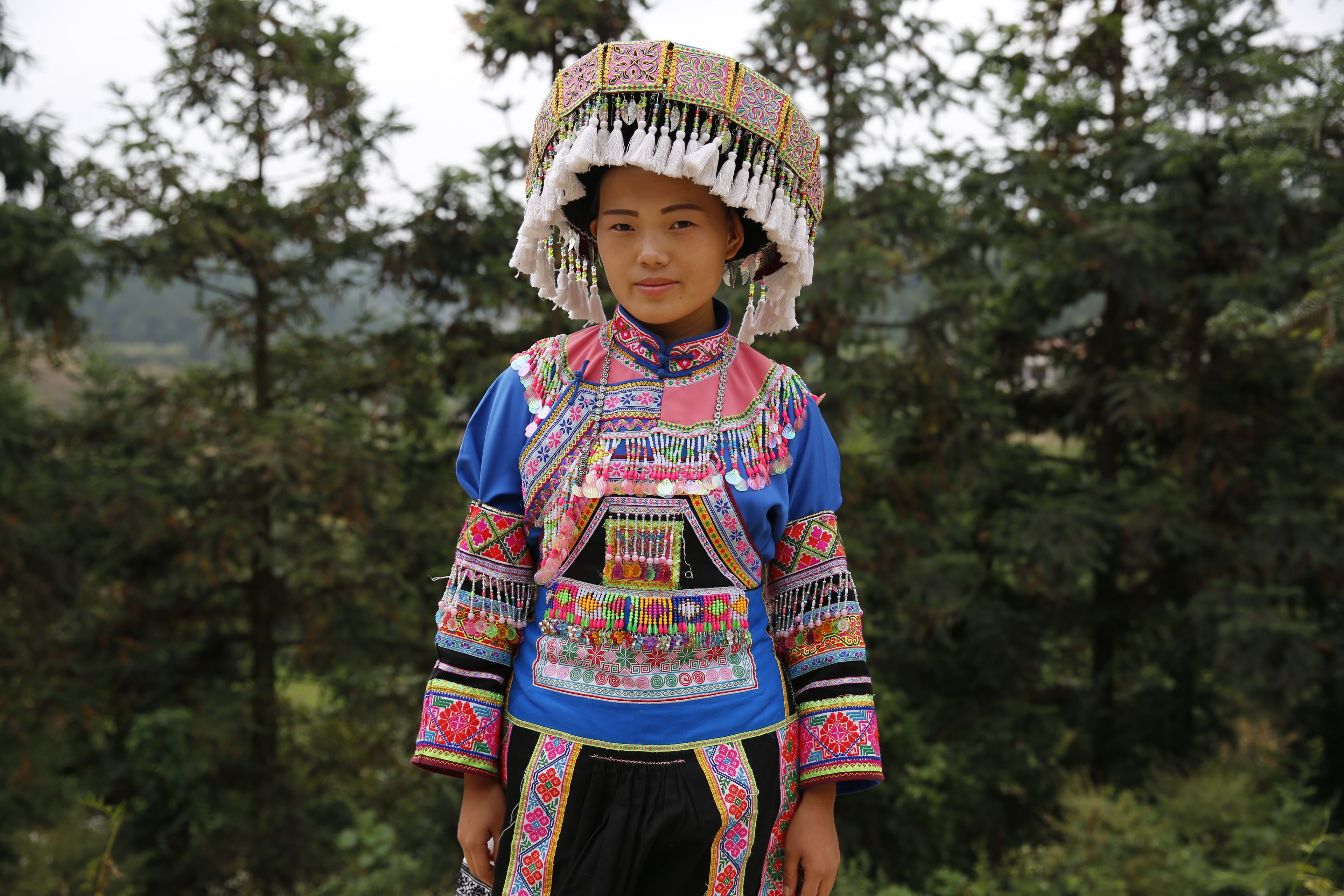 圖片說明:貴州貴陽(yáng)苗族女子對(duì)襟刺繡上衣