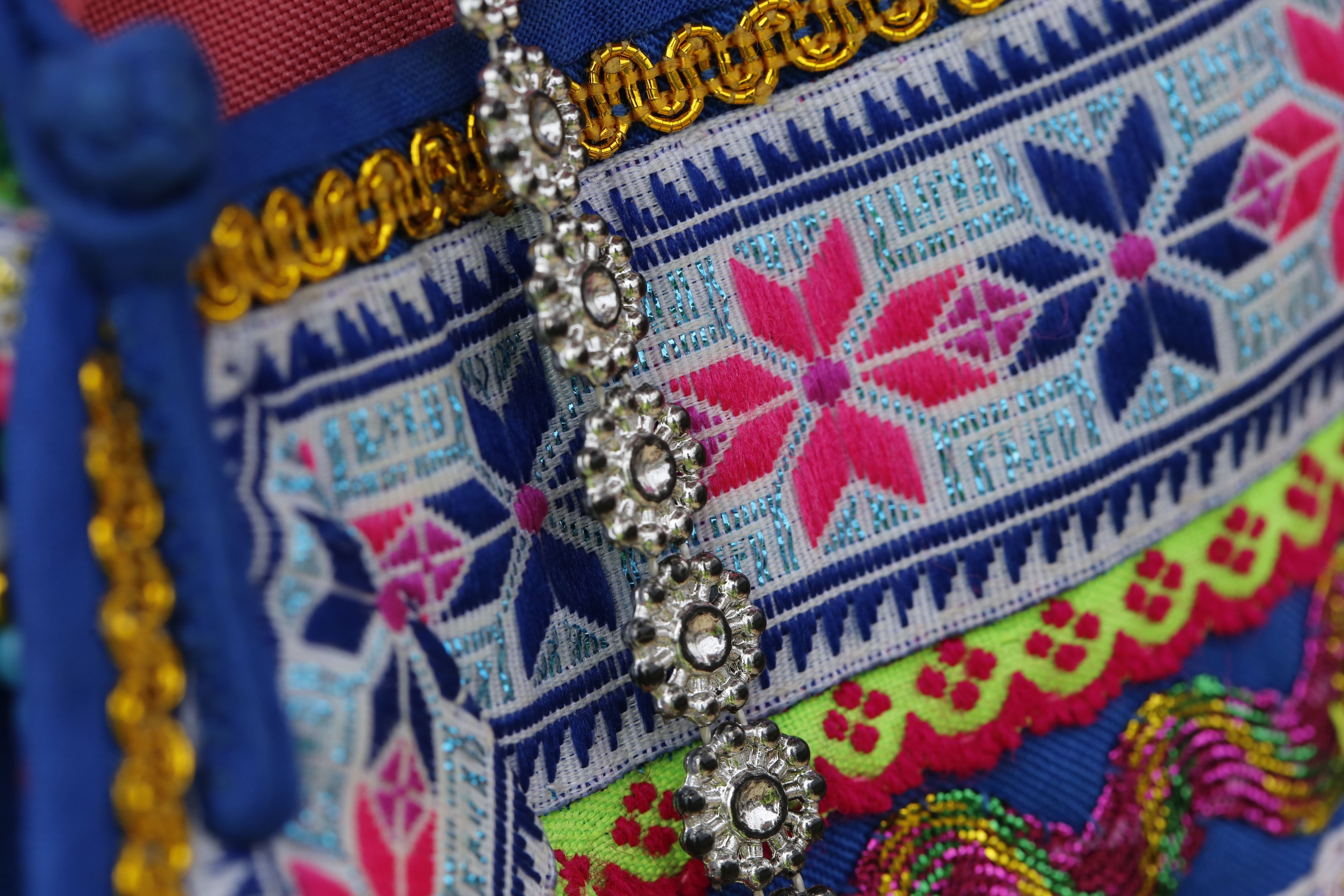 苗族女子對(duì)襟刺繡上衣-繡花和裝飾