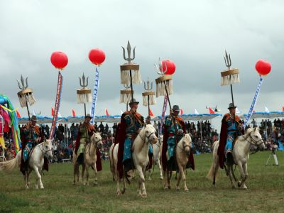 圖片說明:蒙古族體育比賽馬隊(duì)進(jìn)場(chǎng)